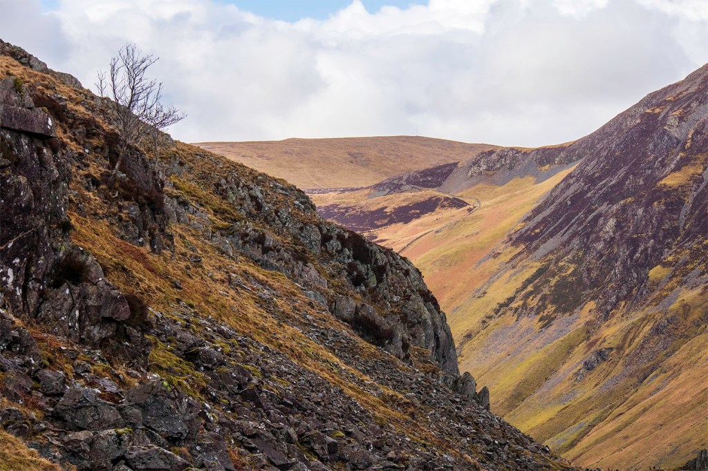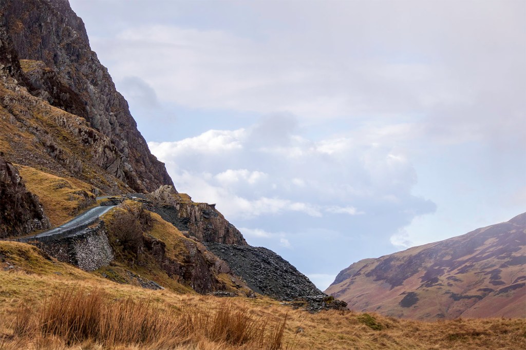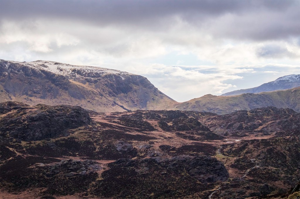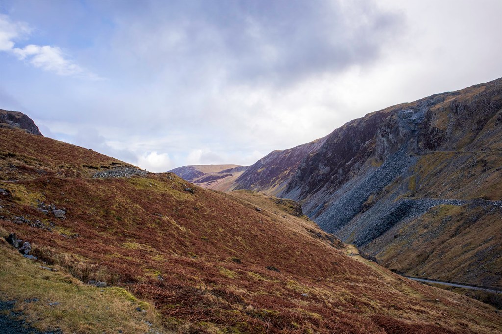 The afternoon alternated between clear skies and freezing hale, and I thankfully just missed getting caught in a low cloud on my descent from Fleetwith back down towards the slate mine.